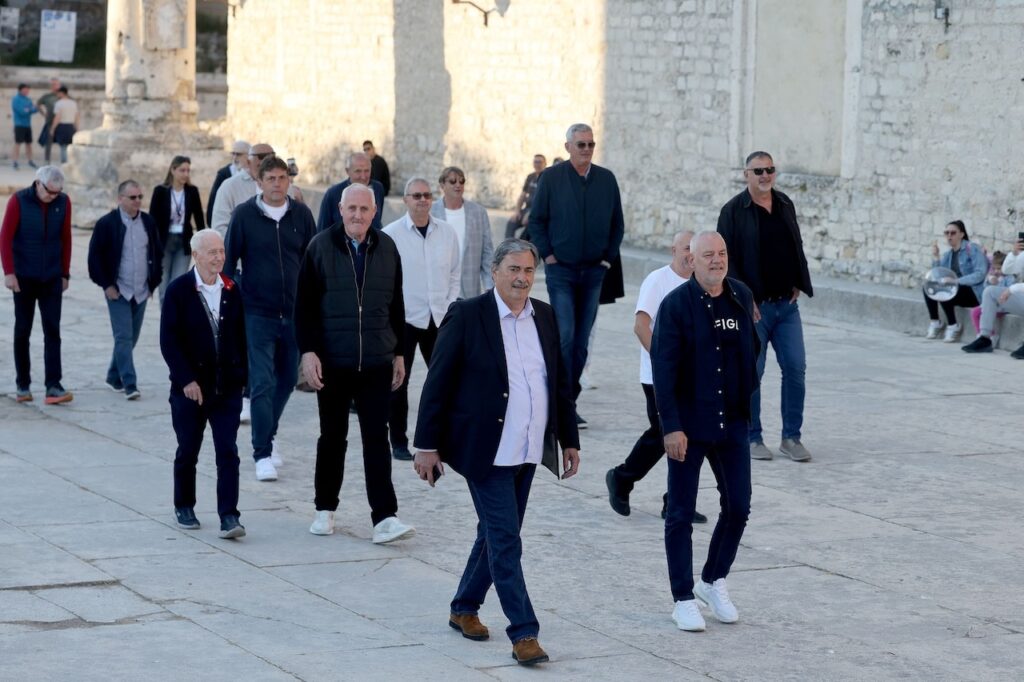 Na Narodnom trgu igrače su dočekali župan Zadarske županije Josip Bilaver, gradonačelnik Šime Erlić, brojni sportski djelatnici i uzvanici, kao i direktor KK Zadar Roko Jurlina, jedan od ključnih inicijatora obilježavanja ove velike obljetnice. Program su vodili Danijela Đimoti, Ivica Štorić i Igor Jelenić Toto, razgovarajući s članovima slavne generacije, a svaki njihov izlazak na pozornicu bio je nagrađen velikim pljeskom. Igrače je pak prozivao legendarni Zdenko Perić.