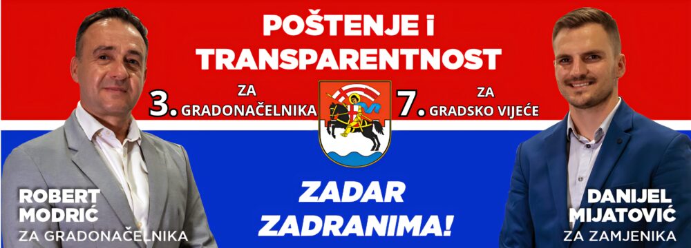 Danas, s istim osjećajem odgovornosti i predanosti, Robert Modrić kandidira se za gradonačelnika Zadra, odlučan u namjeri da se bori za pošteniji, pravedniji i dostojanstveniji život svih građana.