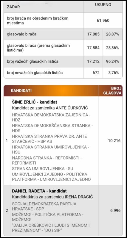 Podsjetimo, od 61.960 birača u Zadru, glasovalo je svega njih 17.885.