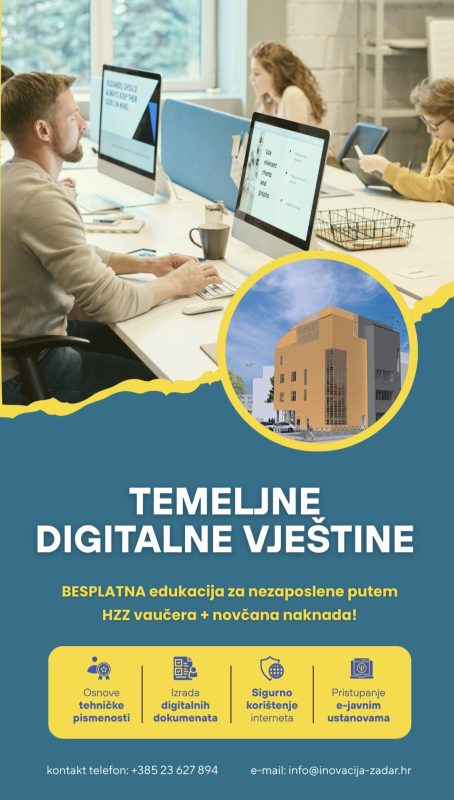 Danas je poznavanje rada na računalu i korištenje interneta potrebno u gotovo svakom poslu i svakodnevnom životu. Ako želite naučiti osnovne digitalne vještine i lakše se snaći u digitalnom svijetu, prijavite se na besplatni program edukacije „Temeljne digitalne vještine“.