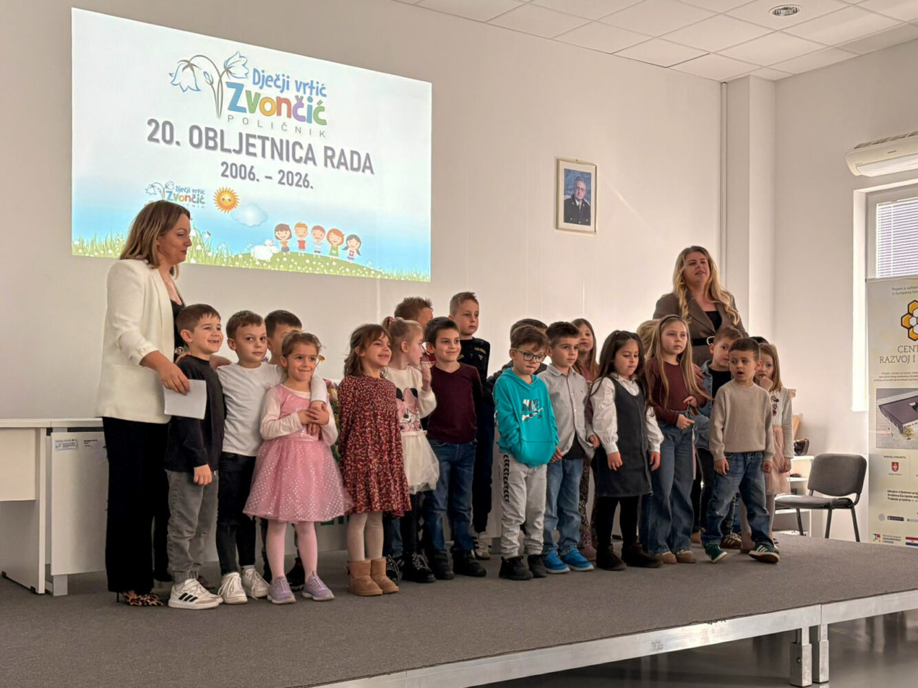 Dana 5.3.2026. godine u Centru za razvoj edukaciju u Poličniku održana je svečana sjednica povodom 20. obljetnice rada Dječjeg vrtića Zvončić!