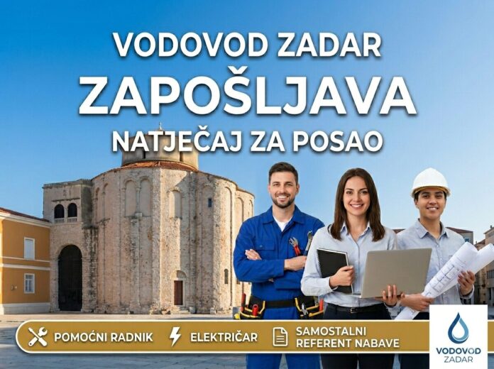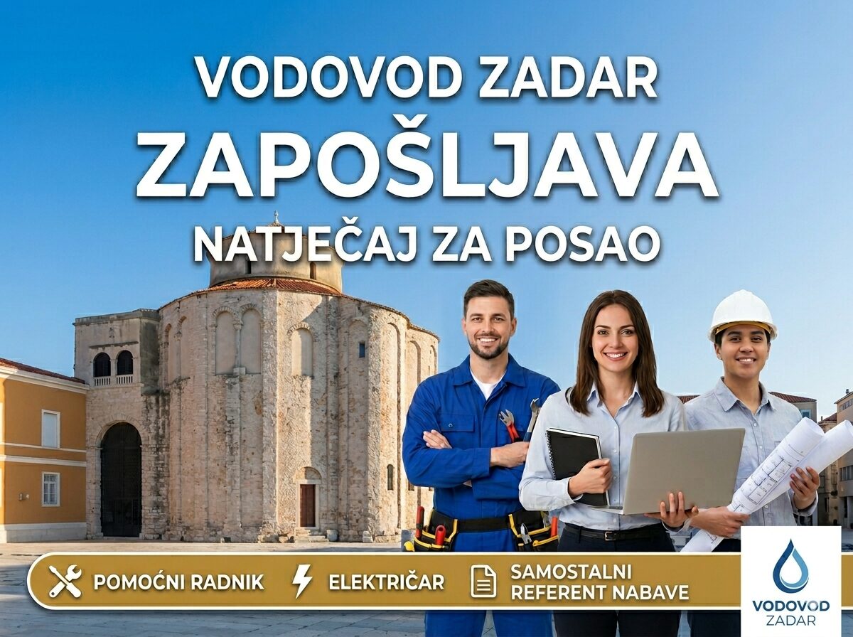 Vodovod d.o.o. Zadar objavio je dana 25. ožujka 2026. godine javne natječaje za zasnivanje radnog odnosa za sljedeća radna mjesta:
