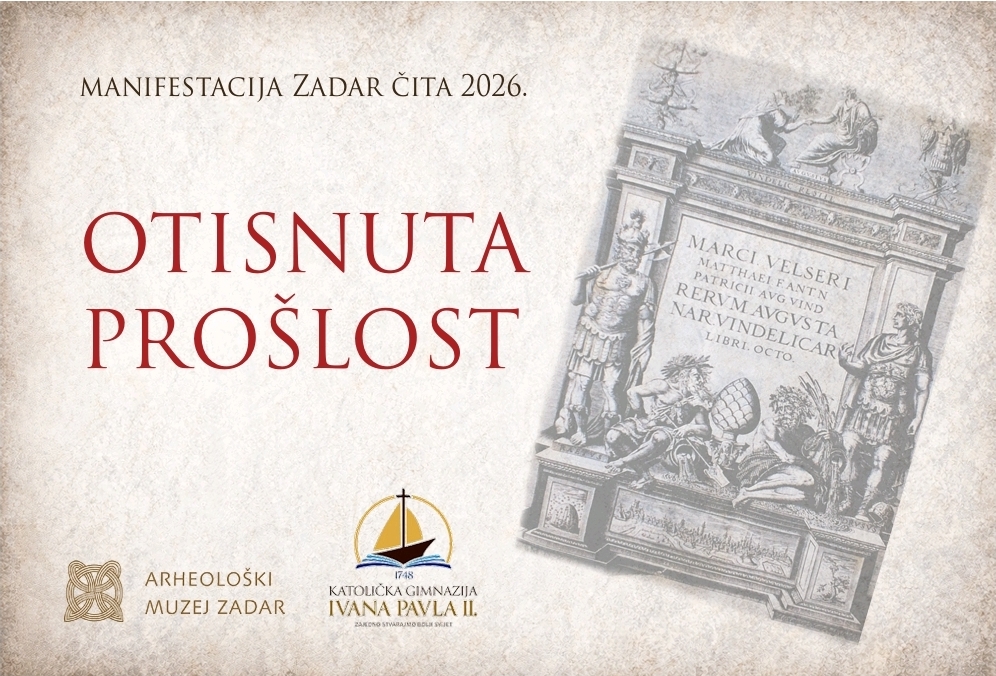 Arheološki muzej Zadar i Katolička gimnazija Ivana Pavla II. u Zadru imaju čast pozvati Vas na manifestaciju ZADAR ČITA 2026. – OTISNUTA PROŠLOST, koja će se održati u petak, 27. ožujka 2026. u 12:00 sati u Arheološkom muzeju Zadar.