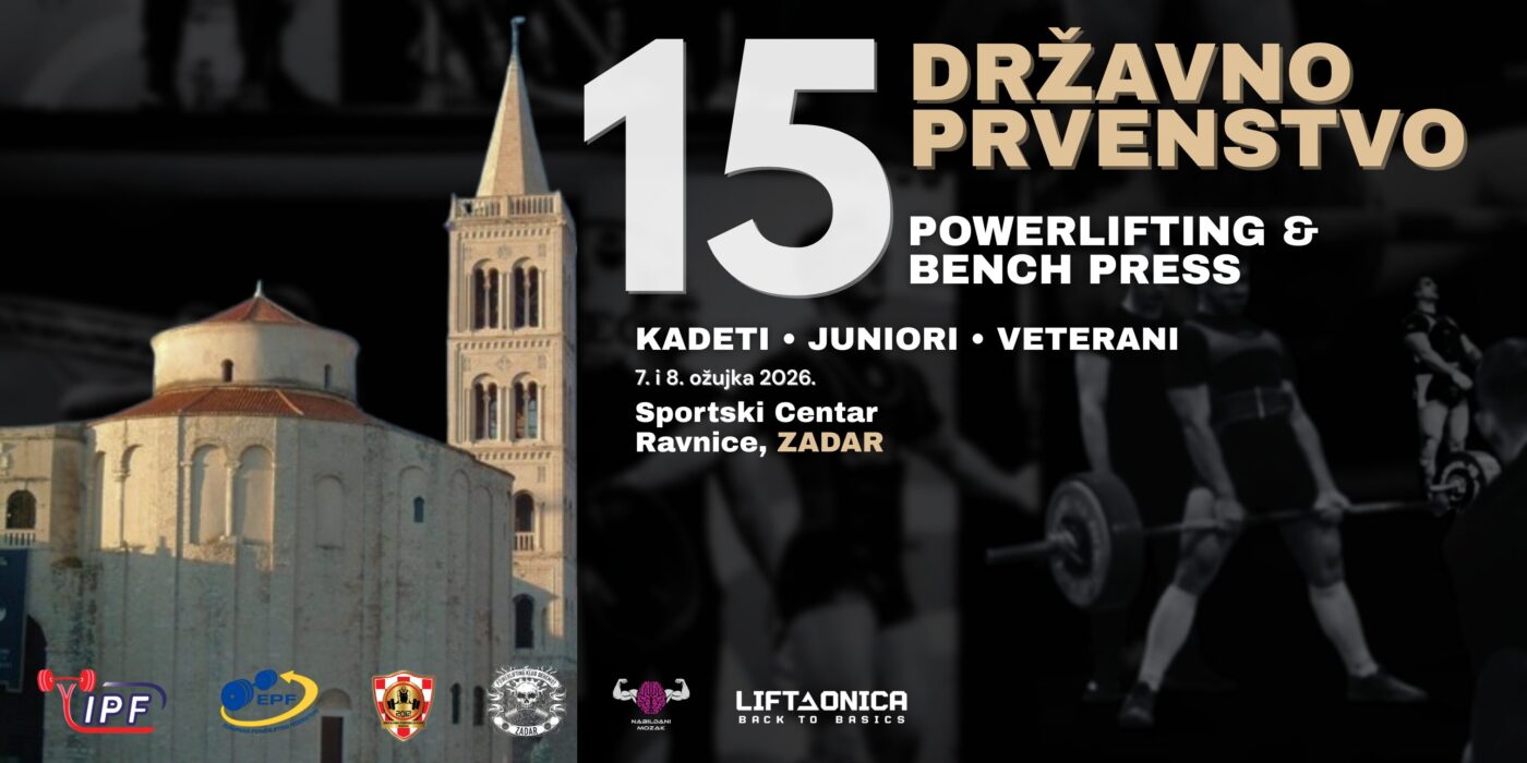 U Zadru će se 7. i 8. ožujka 2026. u ŠRC Ravnice održati 15. državno prvenstvo u powerliftingu za kadete, juniore i veterane.