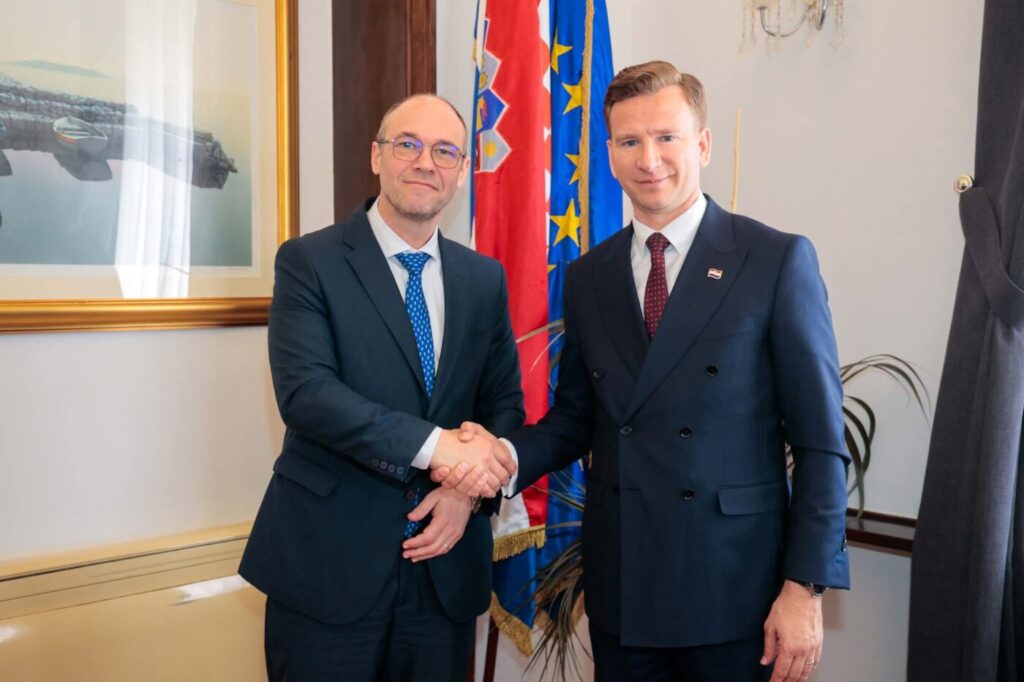Župan Josip Bilaver održao je u Domu Zadarske županije radni sastanak s hrvatskim zastupnikom u Europskom parlamentu Davorom Ivom Stierom i suradnicima.