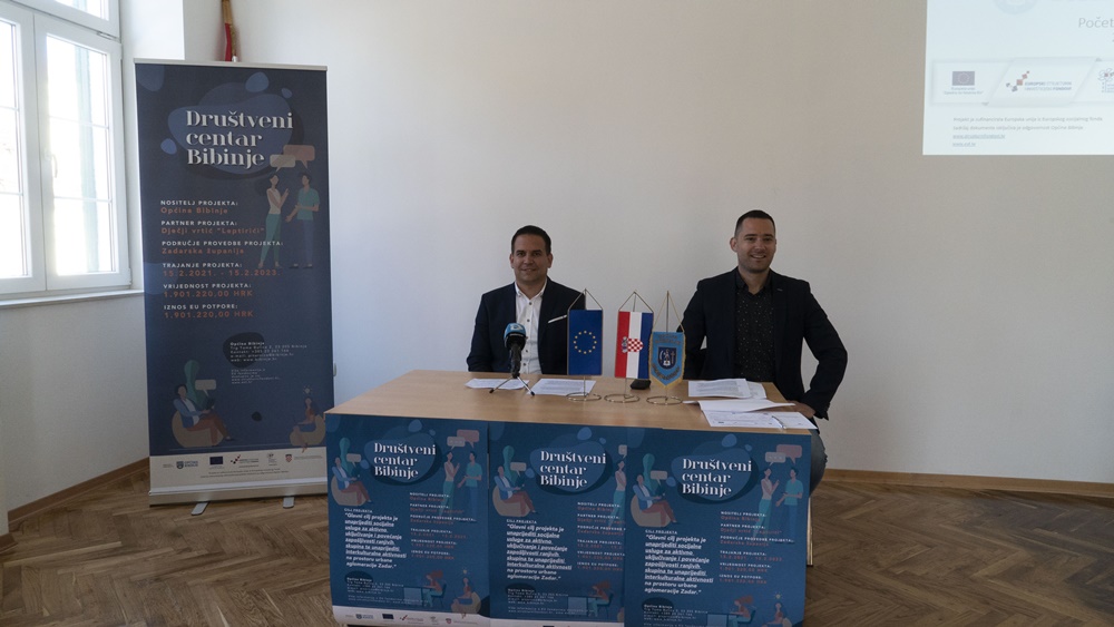 Završna konferencija europskog projekta Društveni centar (veljača 2023). čij je nositelj Općina Bibinje, a projektni partner Dječji vrtić ,Leptirići”. Vrijednost projekta bila je 1.901.220,00 kuna i u potpunosti ga je financira Europska unija iz Europskog socijalnog fonda. Društveni centar smješten je u prizemlju zgrade općinske uprave, odnosno na mjestu gdje se nekada nalazila stara mjesna škola, a postao je mjesto druženja i učenja svih mještana. Trebalo je u potpunosti obnoviti prostorije, prilagoditi ih osobama s invaliditetom, urediti sanitarni čvor, te opremiti suvremenim audio-vizualnim uređajima i informatičkom opremom. Voditelj projekta bio je Šime Sikirić.